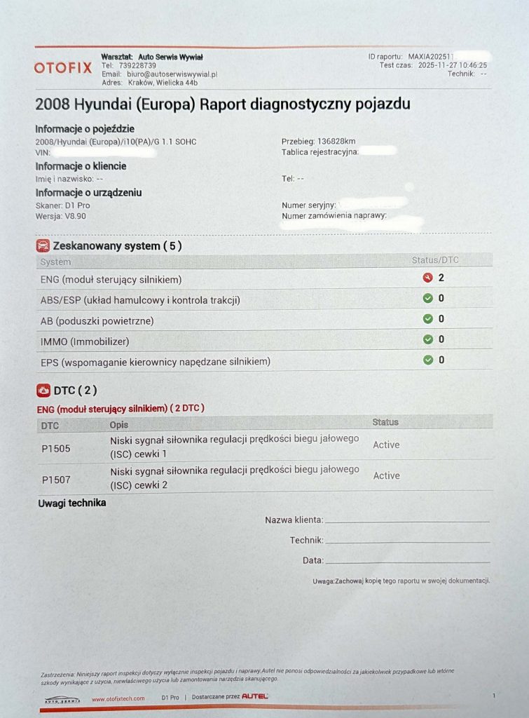 Tak wygląda wydruk który otrzymuje od nas klient w momencie odbioru samochodu po zakończonym serwisie.